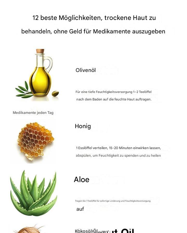 Trockene Haut, auch Xerose genannt, ist ein weit verbreitetes Problem, das bei unsachgemäßer Behandlung unangenehm sein und zu ernsteren Hautproblemen führen kann. Obwohl es viele rezeptfreie Produkte gibt, greifen viele Menschen zu natürlichen Heilmitteln, um Chemikalien zu vermeiden und Geld zu sparen. Diese natürlichen Lösungen können genauso wirksam sein wie kommerzielle Produkte, wenn nicht sogar wirksamer. In diesem Artikel stellen wir Ihnen 12 der besten Möglichkeiten vor, trockene Haut mit erschwinglichen und kostengünstigen Inhaltsstoffen und Methoden zu behandeln.