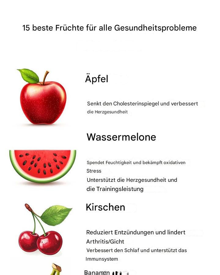 Obst ist seit Jahrhunderten fester Bestandteil der menschlichen Ernährung und bietet eine Vielzahl gesundheitlicher Vorteile, sowohl präventiv als auch therapeutisch. Reich an essentiellen Vitaminen, Mineralstoffen und Antioxidantien spielt Obst eine entscheidende Rolle für die allgemeine Gesundheit und das Wohlbefinden. Es ist bekannt, dass es das Risiko chronischer Erkrankungen senkt, die Verdauung verbessert, das Immunsystem stärkt und sogar die psychische Gesundheit fördert. Indem Sie verschiedene Obstsorten in Ihre tägliche Ernährung integrieren, können Sie deren natürliche Kraft nutzen, um eine Vielzahl von Gesundheitsproblemen zu bekämpfen und ihnen vorzubeugen.