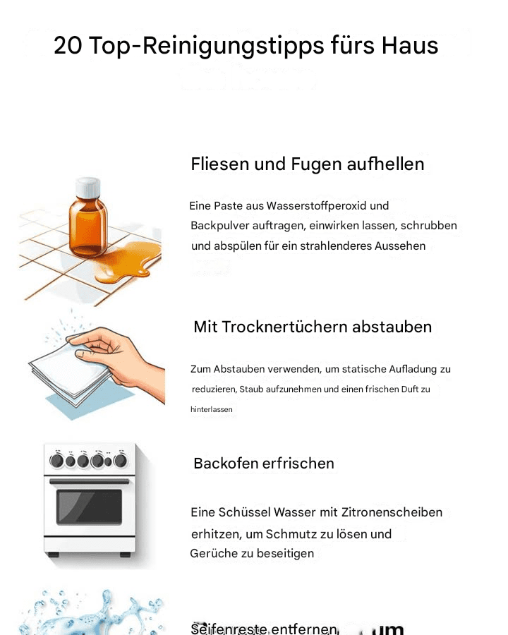 Ein sauberes und ordentliches Zuhause zu haben, kann sich manchmal wie eine endlose Aufgabe anfühlen. Mit den richtigen Tricks wird das Putzen jedoch effizienter und sogar angenehmer. Diese Reinigungsstricks nutzen gängige Haushaltsgegenstände, um Schmutz, Dreck und Gerüche zu beseitigen und so Zeit und Geld zu sparen.
