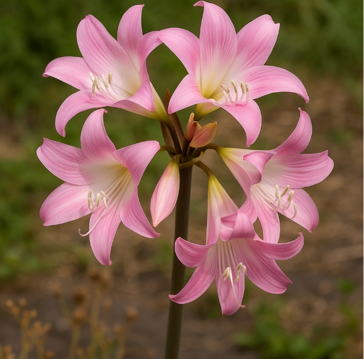 Blütezeit : Spätsommer/Frühherbst, an einem kahlen (blattlosen) Stängel – die Blüten erscheinen vor dem Laub (ein Phänomen, das als Hysteranthy bezeichnet wird ).