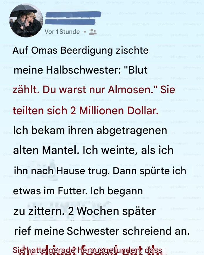 Der Anwalt räusperte sich energisch. „Ihre Großmutter hat ganz genaue Anweisungen gegeben, dass Ihnen der Mantel ausgehändigt werden soll.“