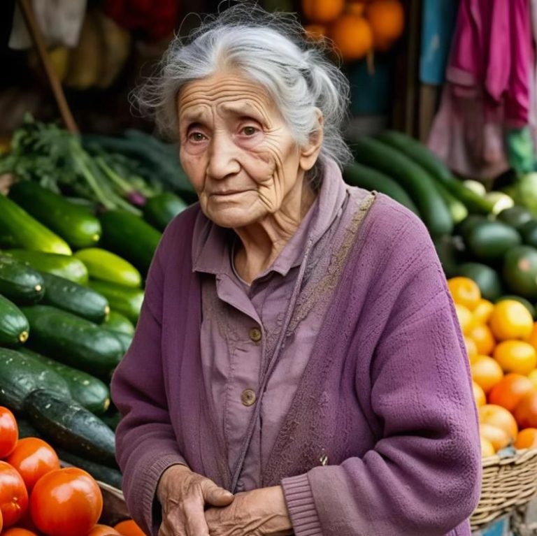 Er blieb vor den glänzenden Äpfeln, den reifen Tomaten, den roten Kirschen und den duftenden Pfirsichen stehen. Dann ging er wieder, die Hände leer, ohne etwas mitzunehmen. Jeden Tag dasselbe Ritual. Er sagte nicht viel, fragte nichts, er saß einfach nur da, beobachtete und erinnerte sich vielleicht.