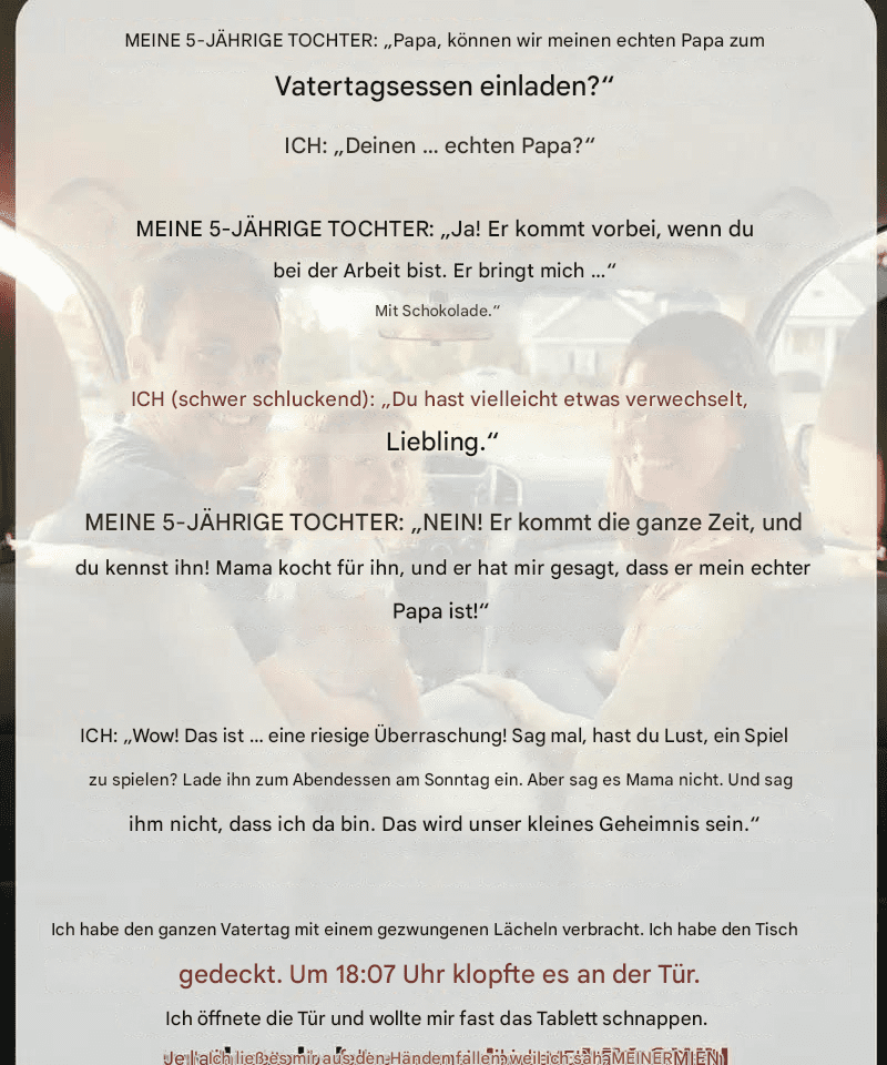Der Vatertag sollte ganz normal sein – schön, unkompliziert, mit selbstgemachten Geschenken. Pfannkuchen am Morgen, eine herzliche Umarmung von meiner Tochter Lily, vielleicht ein ruhiger Abend danach. Nichts Dramatisches.