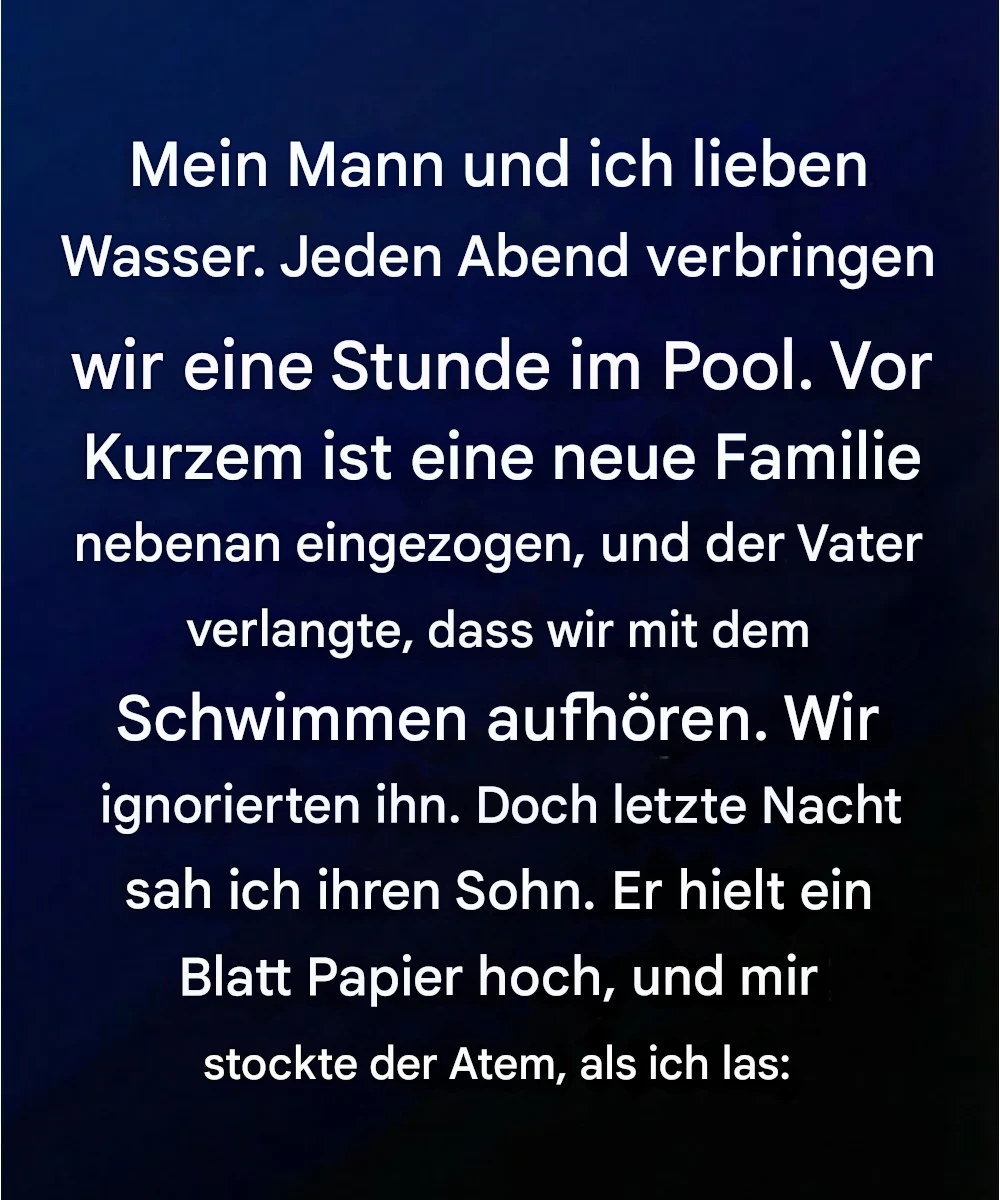 „Ich bitte Sie, den Pool nachts nicht mehr zu benutzen“, sagte er.