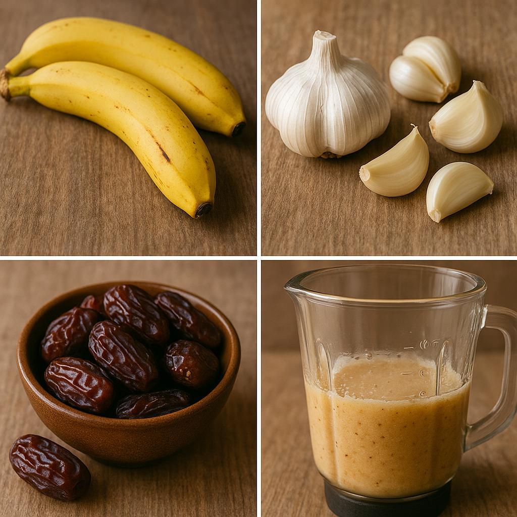 Entdecken Sie die Magie einer Mischung aus Bananen, Knoblauch und Datteln – eine köstliche Mischung voller Nährstoffe, Energie und heilender Wunder. Diese kraftvolle Mischung dient als natürliches Superfood und stärkt Ihr Immunsystem, Ihre Verdauung und Ihr allgemeines Wohlbefinden!