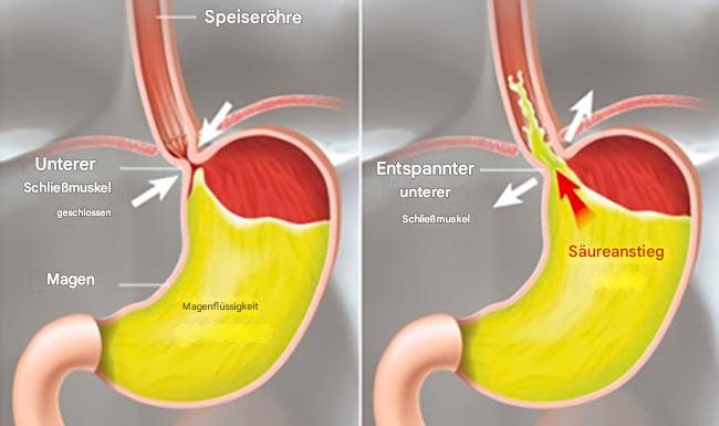 Saurer Reflux und Sodbrennen treten auf, wenn der untere Ösophagussphinkter (LES) nicht vollständig schließt und Magensäure in die Speiseröhre zurückfließen kann. In 90 % der Fälle ist dieser LES-Fehler auf eine zu geringe Magensäure, auch Hypochlorhydrie genannt, zurückzuführen. Dies liegt daran, dass ausreichende Mengen Magensäure erforderlich sind, um dem unteren Ösophagussphinkter das Schließen zu signalisieren.