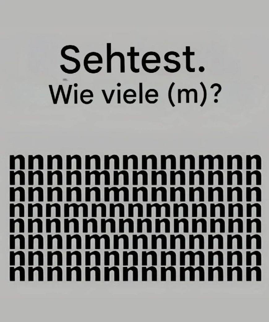 Visuelle Rätsel erfreuen sich im Internet immer größerer Beliebtheit, weil sie nicht nur unterhaltsam sind, sondern auch unsere Konzentrationsfähigkeit, Geduld und Detailgenauigkeit schulen. Ob Kreuzworträtsel, Sudoku oder optische Täuschungen – sie alle haben eines gemeinsam: Sie fordern unser Gehirn heraus und schenken uns gleichzeitig kleine Erfolgserlebnisse, wenn wir die Lösung gefunden haben. Besonders beliebt sind Tests, bei denen man Unterschiede erkennen oder versteckte Symbole finden muss. Einer dieser Tests stellt aktuell viele Menschen vor eine knifflige Herausforderung: In einem Raster voller „n“ ist das Ziel, die versteckten „m“ aufzuspüren. Klingt leicht – ist es aber nicht, denn unser Gehirn spielt uns dabei so manchen Streich.