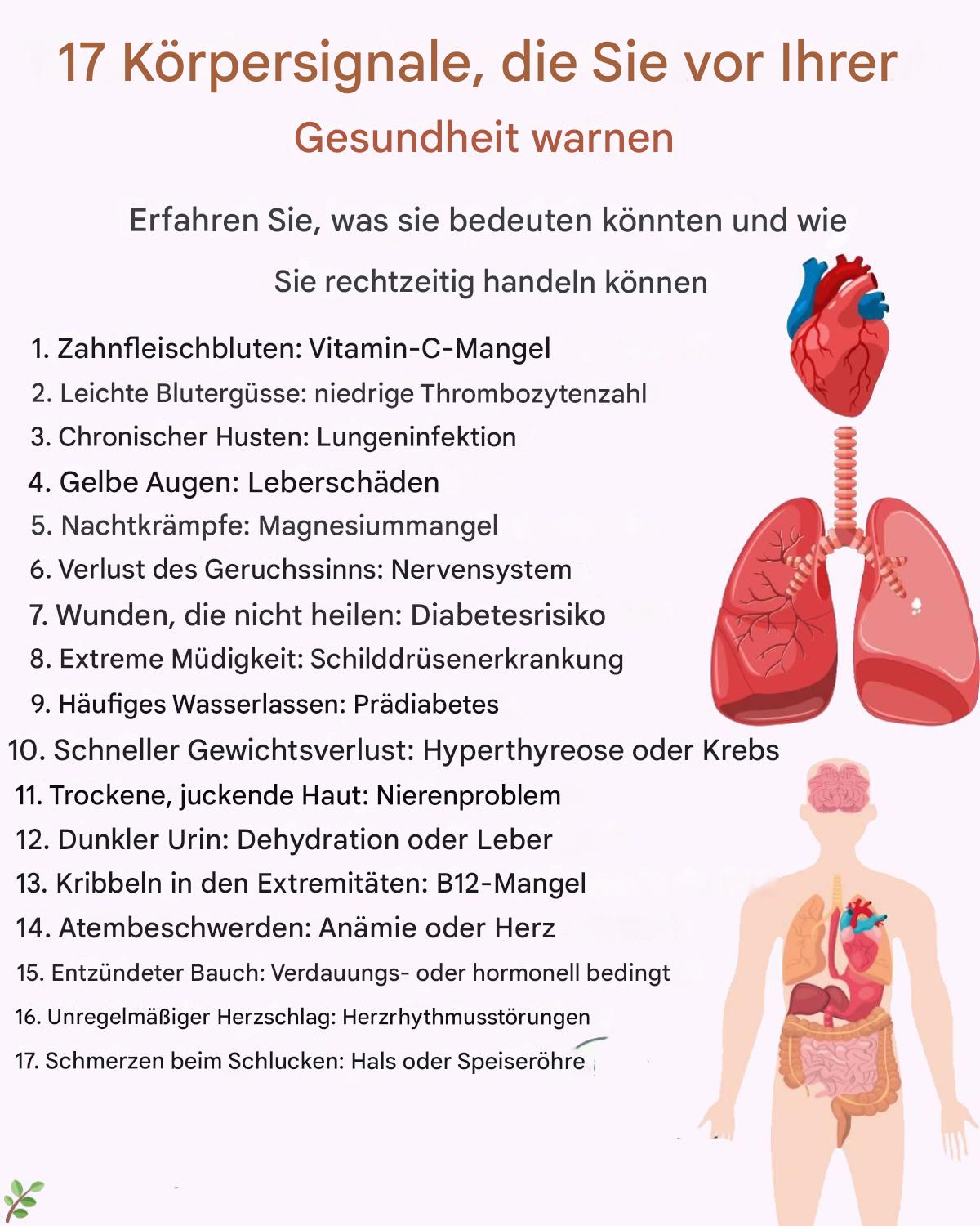 Der menschliche Körper ist weise und sendet uns ständig Signale, wenn etwas nicht richtig funktioniert. Oftmals sind diese kleinen, scheinbar harmlosen Symptome Frühwarnungen für tiefere Ungleichgewichte. Die Beachtung dieser Erscheinungen ist entscheidend, um gesundheitliche Probleme rechtzeitig zu erkennen und vorbeugende Maßnahmen zu ergreifen. Mit Unterstützung der Naturheilkunde ist es möglich, viele dieser Beschwerden auf einfache, sichere und kostengünstige Weise zu lindern.