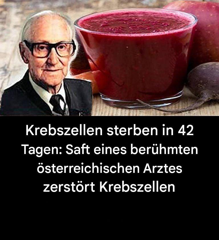 Er entwickelte diesen einzigartigen Saft, der außergewöhnliche Ergebnisse bei der Behandlung von Krebs liefert. Er hat mehr als 45.000 Menschen mit Krebs und anderen unheilbaren Krankheiten mit dieser Methode behandelt. Breuss sagte, Krebs könne nur mit Hilfe von Proteinen überleben.