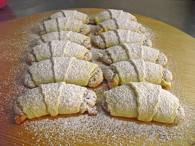 Rumänische Nusshörnchen aus Sauerrahmteig