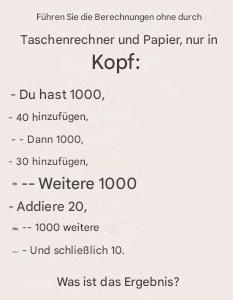 Stellen Sie sich einfache Additionen vor: 1000 + 40 + 1000 + 30 + 1000 + 20 + 1000 + 10. Die Antwort scheint offensichtlich, oder? Viele denken, die Summe sei falsch und betrage 5000 statt 4100. Aber woher kommt diese Verwirrung?