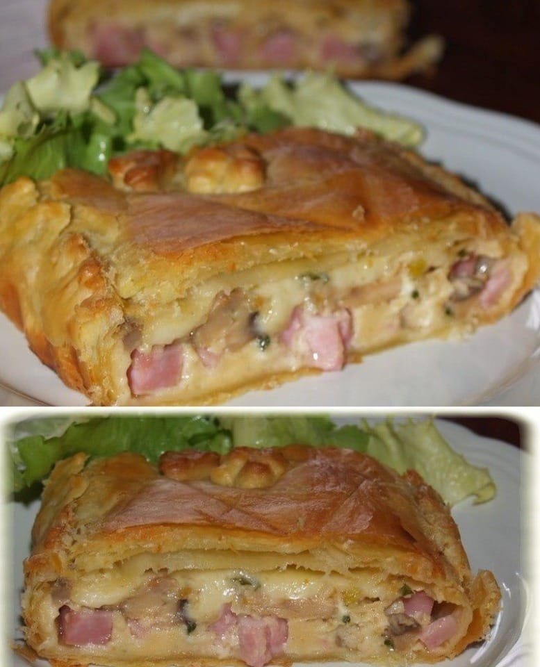 Hier ist ein einfaches Rezept für einen Schinken-, Pilz- und Camembert-Kuchen, perfekt als Snack oder Gourmet-Abendessen: