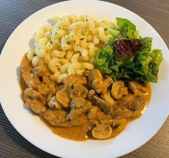 “Schweinegeschnetzeltes mit Champignons-Rahm und Nudeln” ist ein köstliches Gericht der deutschen Küche. Hier ist ein einfaches Rezept:
