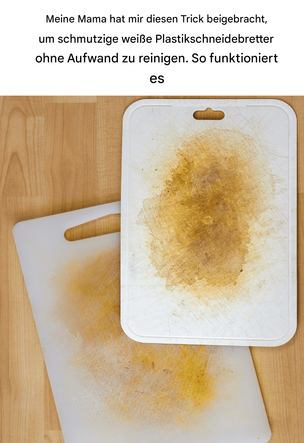 Weiße Schneidebretter aus Kunststoff sind in den meisten Küchen unverzichtbar. Sie sind leicht, robust und ideal zum Schneiden von Gemüse, Fleisch und vielem mehr. Ein Nachteil ist jedoch, dass sie schnell Flecken bekommen und Gerüche aufnehmen. Mit der Zeit reicht regelmäßiges Waschen möglicherweise nicht mehr aus, um ihr makelloses Aussehen zu bewahren. Aber keine Sorge! Ich habe von meiner Mutter einen einfachen Reinigungstrick, der minimalen Aufwand erfordert und bei schmutzigen weißen Schneidebrettern aus Kunststoff Wunder wirkt.
