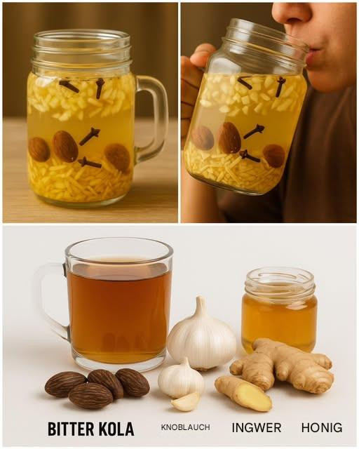 Wenn Sie auf der Suche nach einer starken, natürlichen Mischung sind, um Ihre Gesundheit zu verbessern, ist die Kombination aus bitterer Cola, Knoblauch, Ingwer und Nelken (optional mit Honig) ein traditionelles Heilmittel, das sich in vielen Kulturen bewährt hat.
