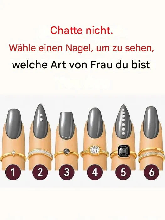 Hier sind sechs „Nageltypen“, die jeweils einen anderen Frauentyp repräsentieren. Wähle den, der dich sofort anspricht, und entdecke, was er über deine Persönlichkeit, deine Stärken und deine Ausdrucksweise verrät.