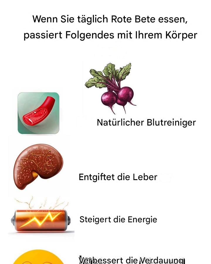 Die Leber ist für die Entgiftung des Körpers verantwortlich, und Rote Beta kann diesen Prozess unterstützen. Rote Bete enthält Betain, eine Verbindung, die der Leber hilft, Fette zu verarbeiten und Giftstoffe auszuscheiden. Regelmäßiger Verzehr von Rote Bete kann die Leberfunktion verbessern und die natürlichen Entgiftungsprozesse des Körpers fördern.