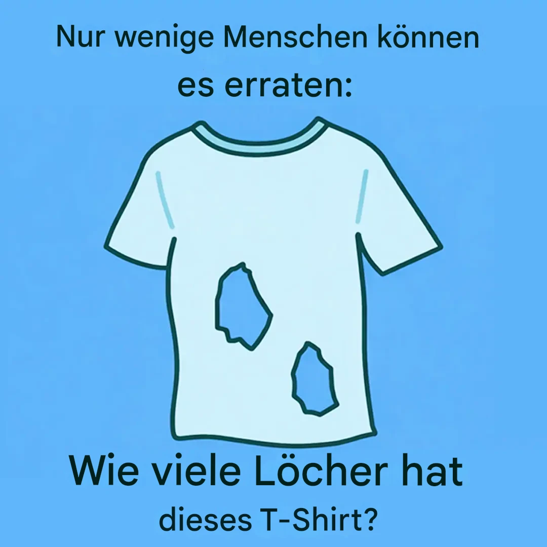 Auf den ersten Blick wirkt die Frage fast zu einfach. Ein T-Shirt, Löcher … nichts Alltäglicheres. Und doch hat dieses Rätsel Tausende in den sozialen Medien ins Grübeln gebracht. Es ist die Art von Herausforderung, die einem für drei Sekunden Selbstvertrauen gibt, bevor Zweifel aufkommen. Also tief durchatmen, die einfachen Antworten vergessen und genau hinsehen … denn hier kommt es auf genaues Beobachten an.