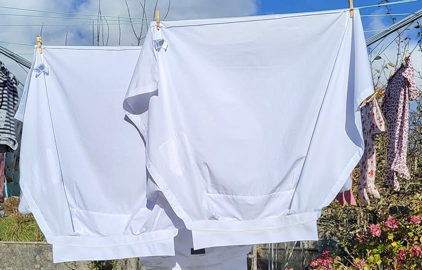 Natürliche Öle, die von der Haut produziert werden (wie Talg und dergleichen), tragen in Kombination mit diesen Faktoren und bei unzureichender Wäsche ebenfalls zur Gelbfärbung des Kragens bei, insbesondere wenn das Hemd häufig getragen und nicht sofort nach dem Gebrauch richtig behandelt wird.