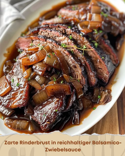 Zarte Rinderbrust in reichhaltiger Balsamico-Zwiebelsauce